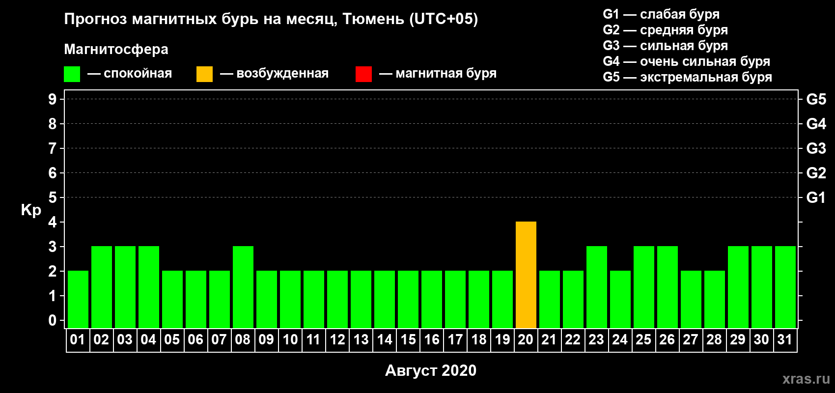 Прогноз магнитных бурь Тюмени — 1 августа 2020 года