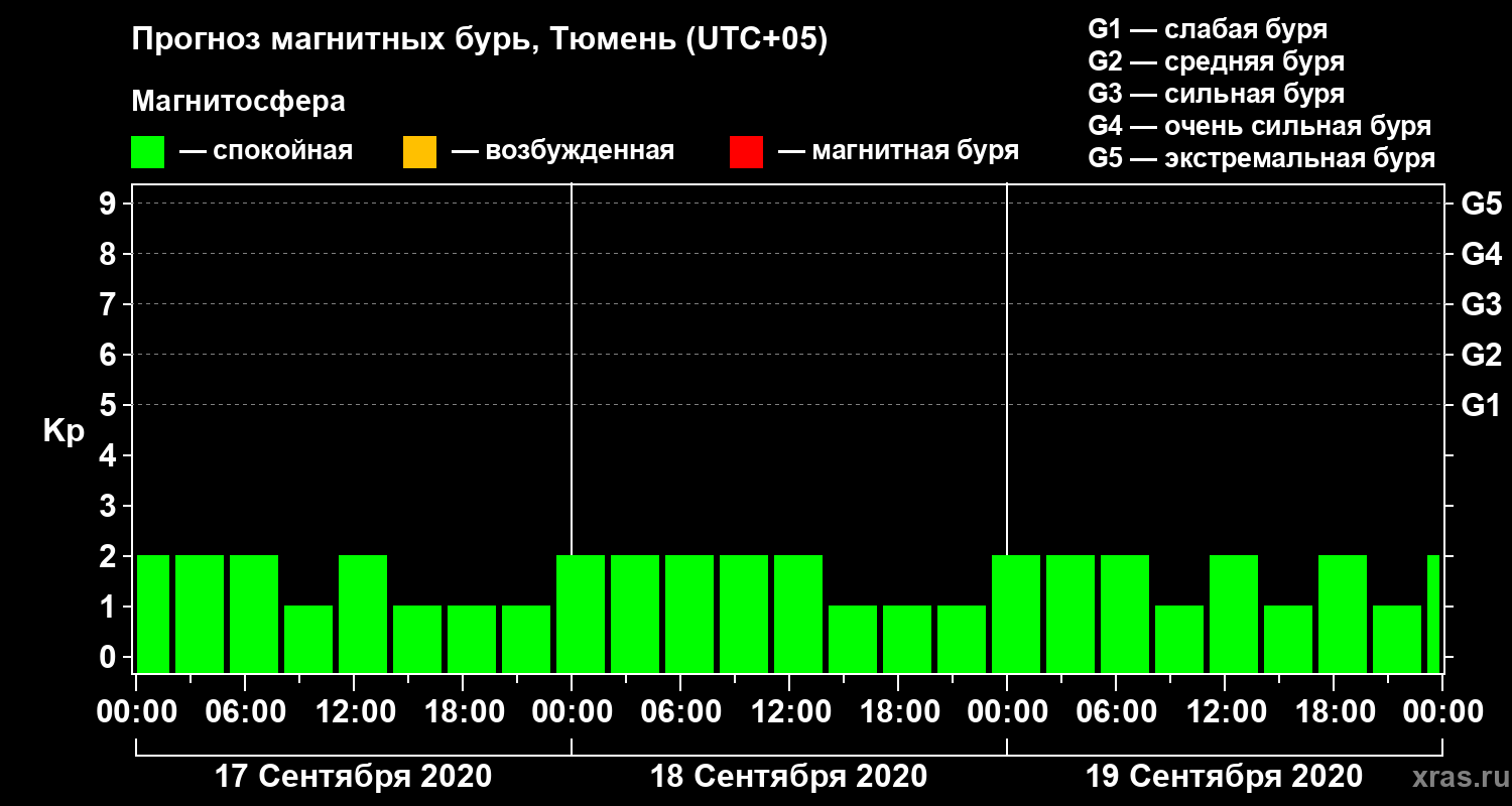 Прогноз магнитных бурь Тюмени — 17 сентября 2020 года