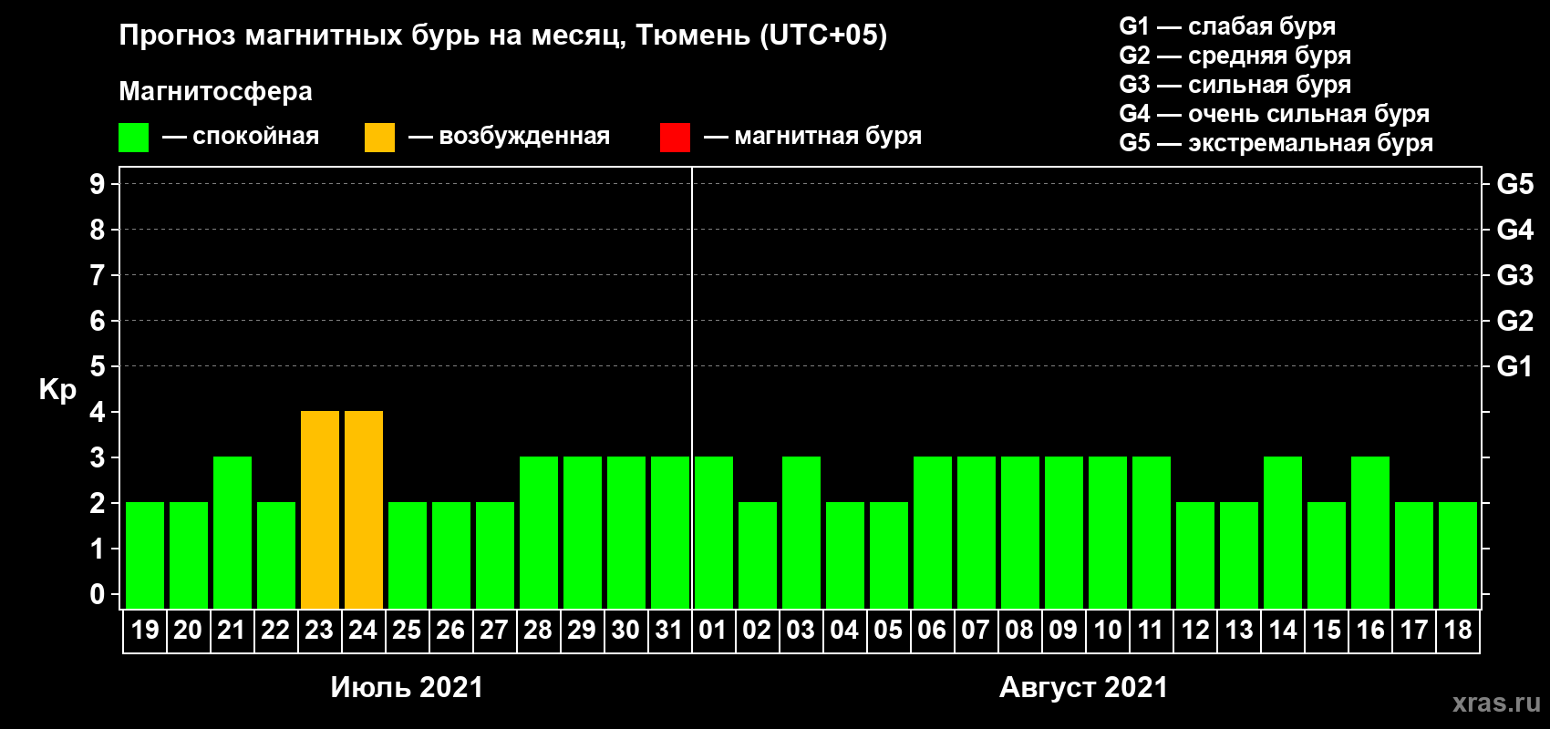 Прогноз магнитных бурь Тюмени — 19 июля 2021 года
