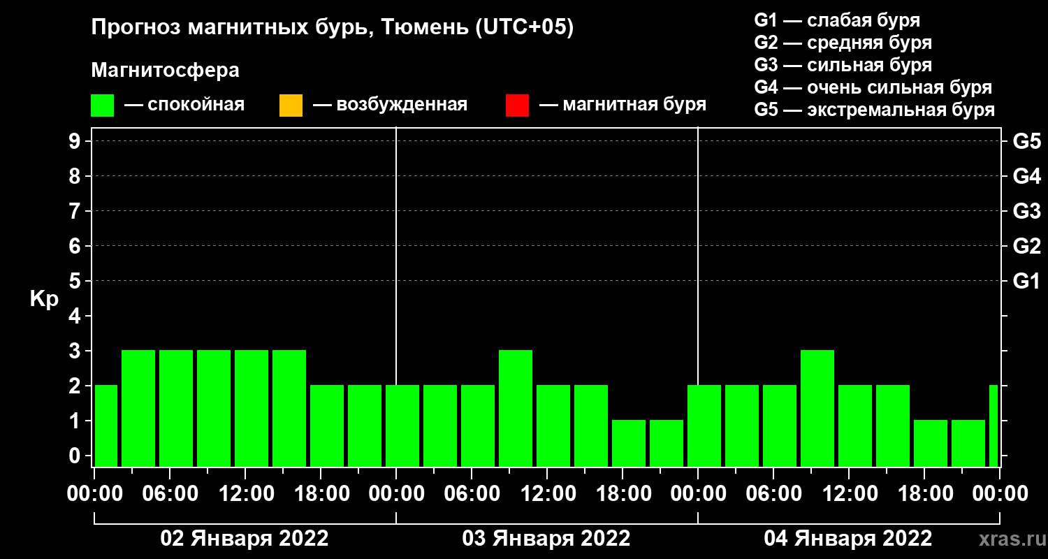 Прогноз магнитных бурь Тюмени — 2 января 2022 года