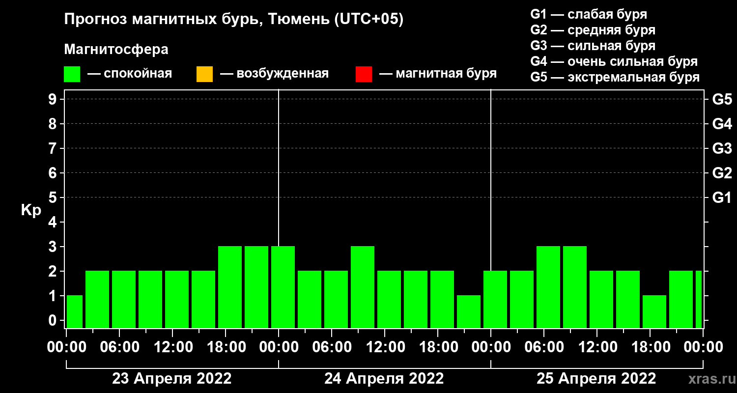 Прогноз магнитных бурь Тюмени — 23 апреля 2022 года