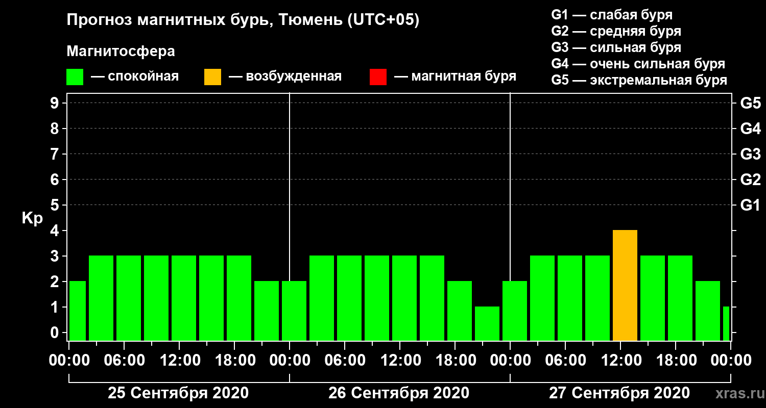 Прогноз магнитных бурь Тюмени — 25 сентября 2020 года