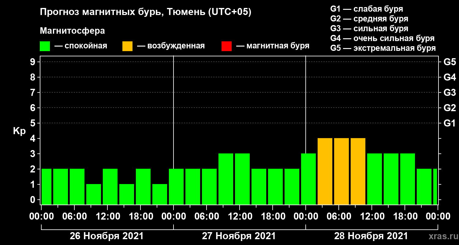 Прогноз магнитных бурь Тюмени — 26 ноября 2021 года