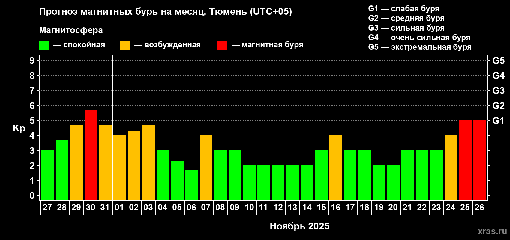 Прогноз магнитных бурь Тюмени — 27 октября 2025 года