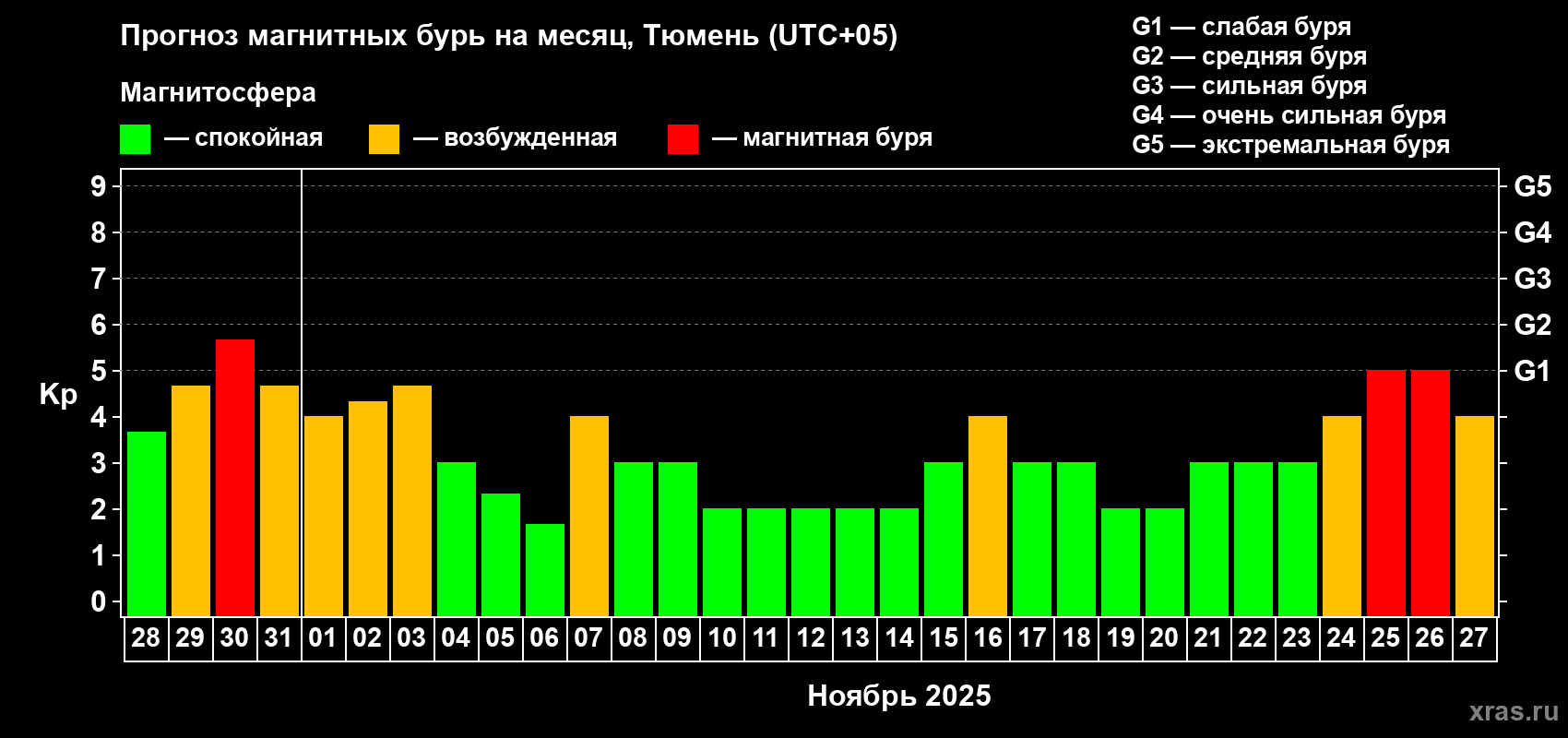 Прогноз магнитных бурь Тюмени — 28 октября 2025 года