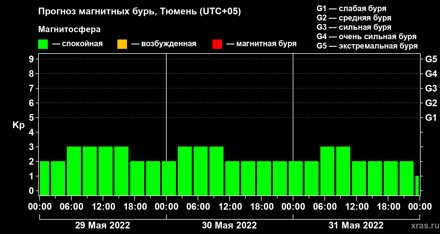 Прогноз магнитных бурь Тюмени — 29 мая 2022 года