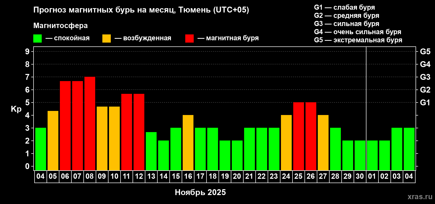 Прогноз магнитных бурь Тюмени — 4 ноября 2025 года