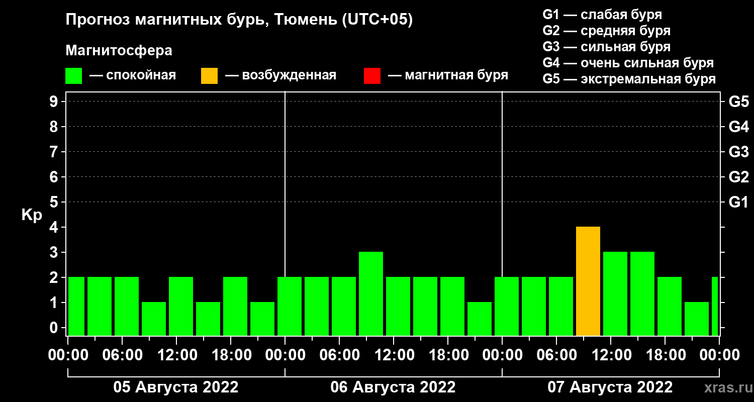 Прогноз магнитных бурь Тюмени на 5 августа 2022 года
