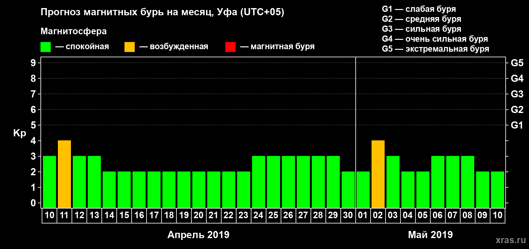 Прогноз магнитных бурь в Уфе — 10 апреля 2019 года