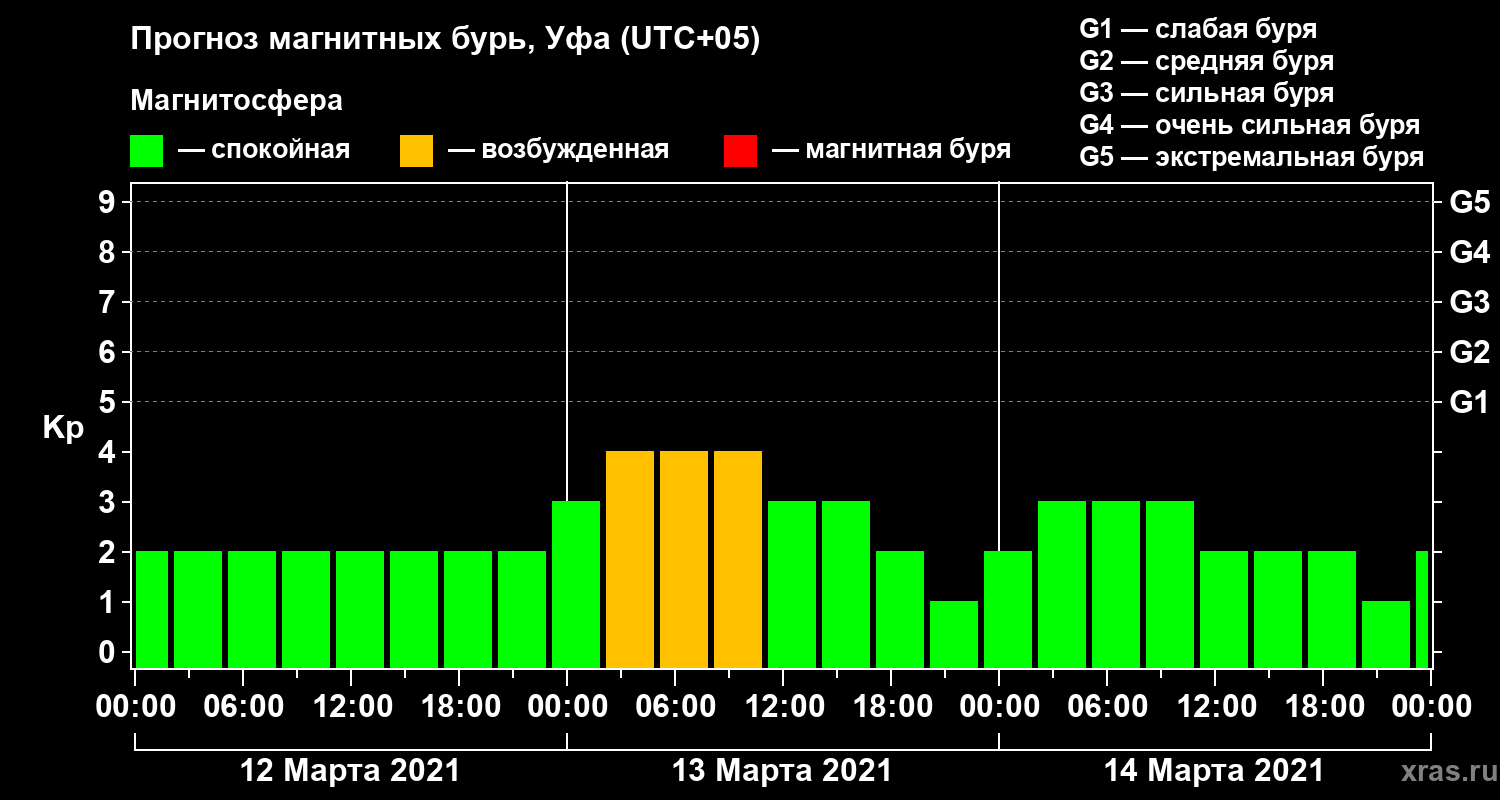 Прогноз магнитных бурь в Уфе — 12 марта 2021 года