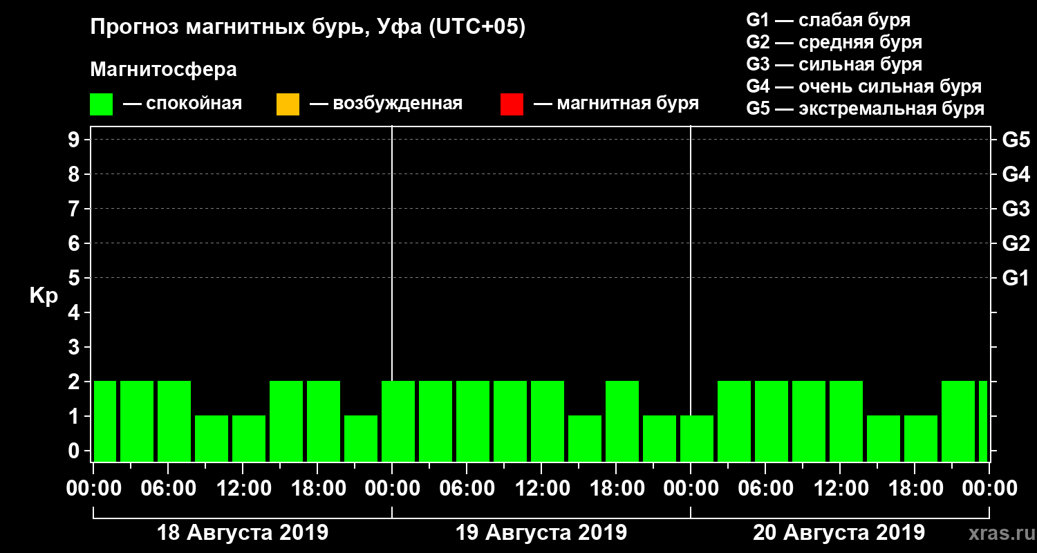 Прогноз магнитных бурь в Уфе на 18 августа 2019 года