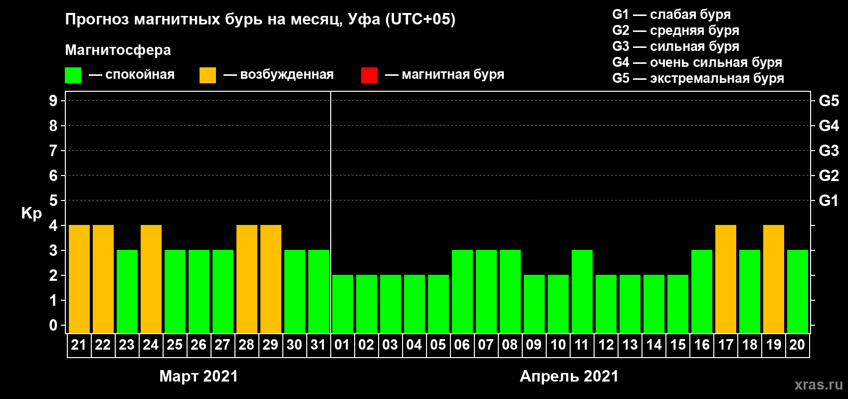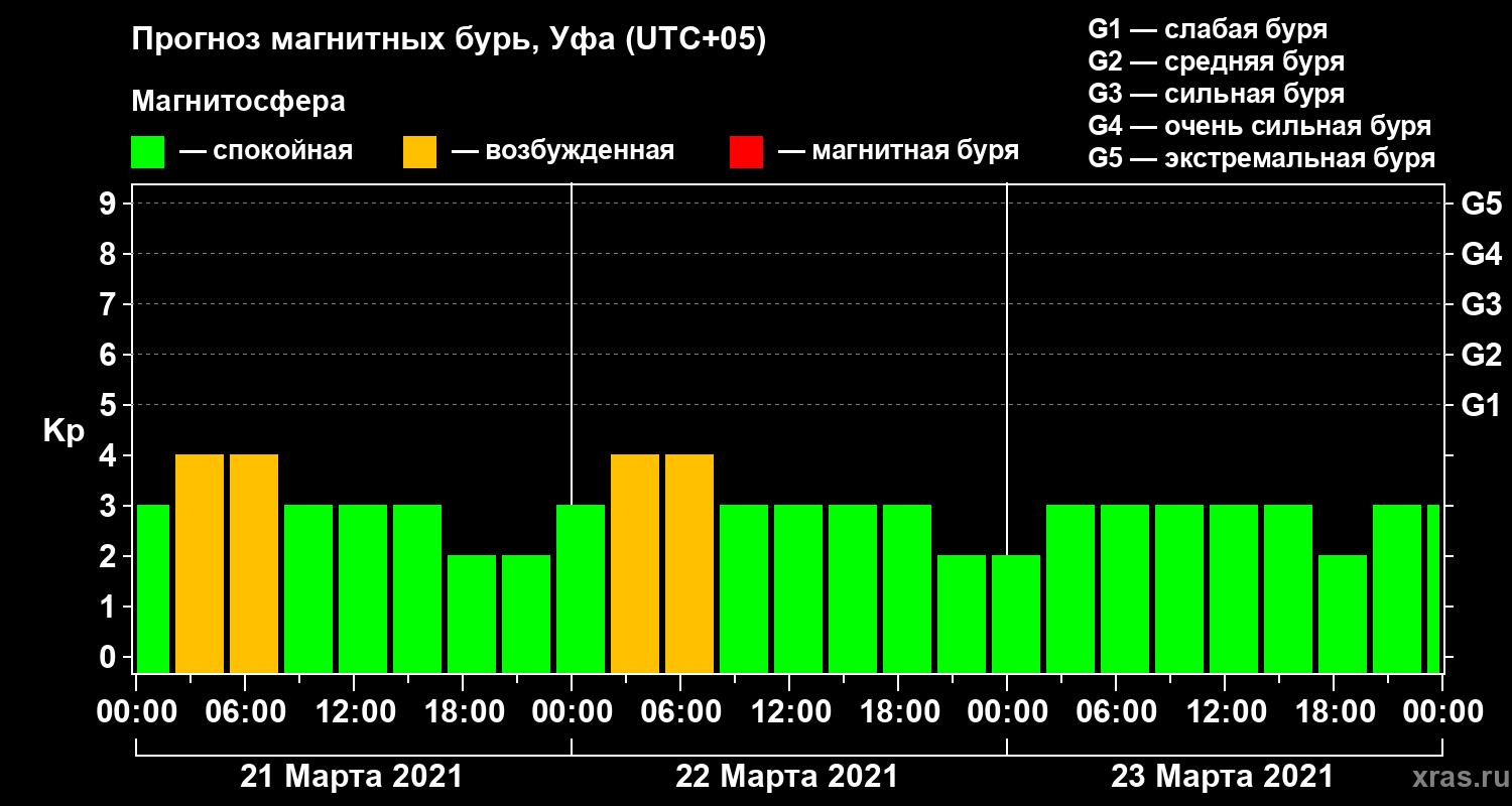 Прогноз магнитных бурь в Уфе — 21 марта 2021 года