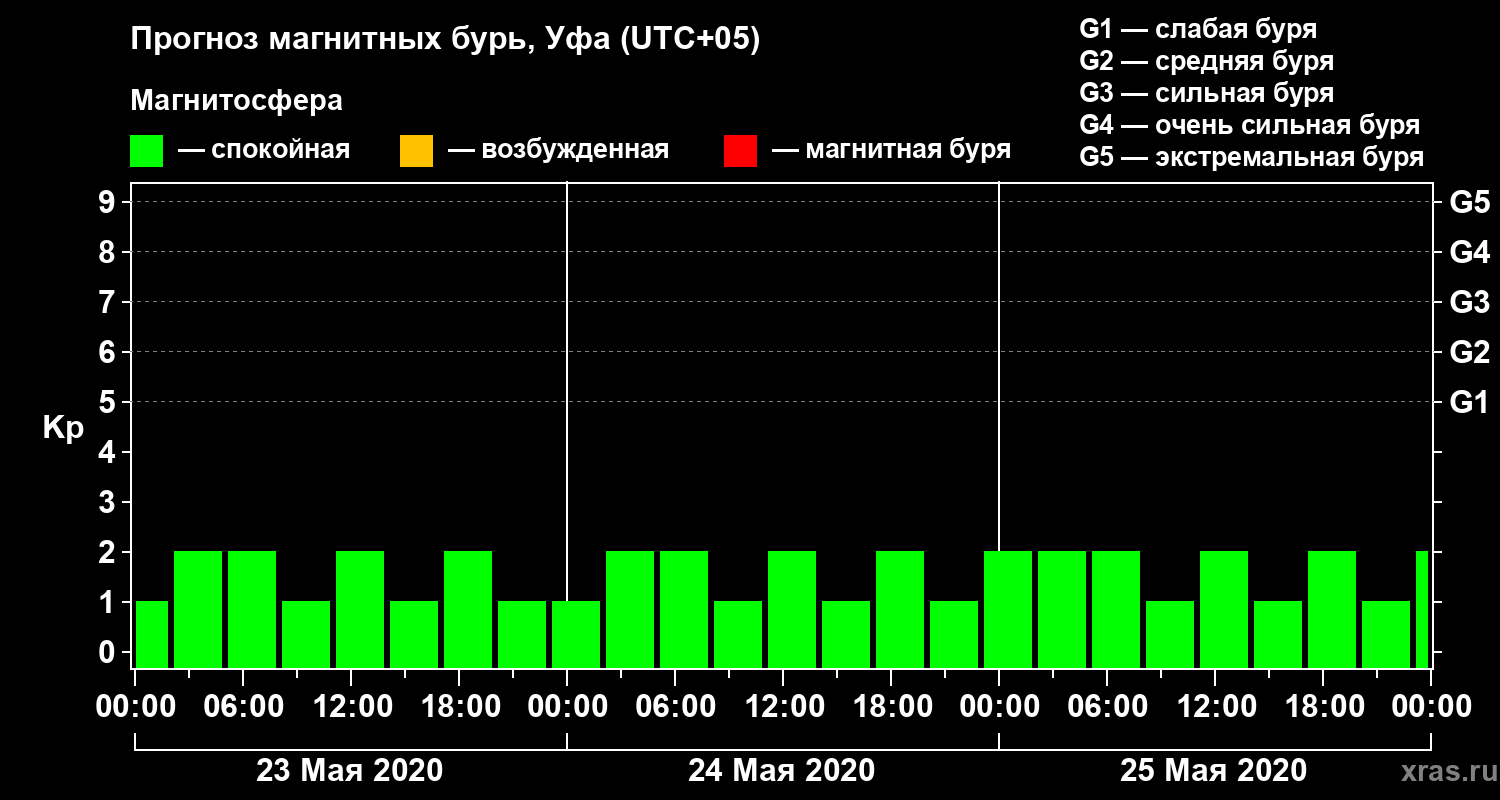 Прогноз магнитных бурь в Уфе на 23 мая 2020 года