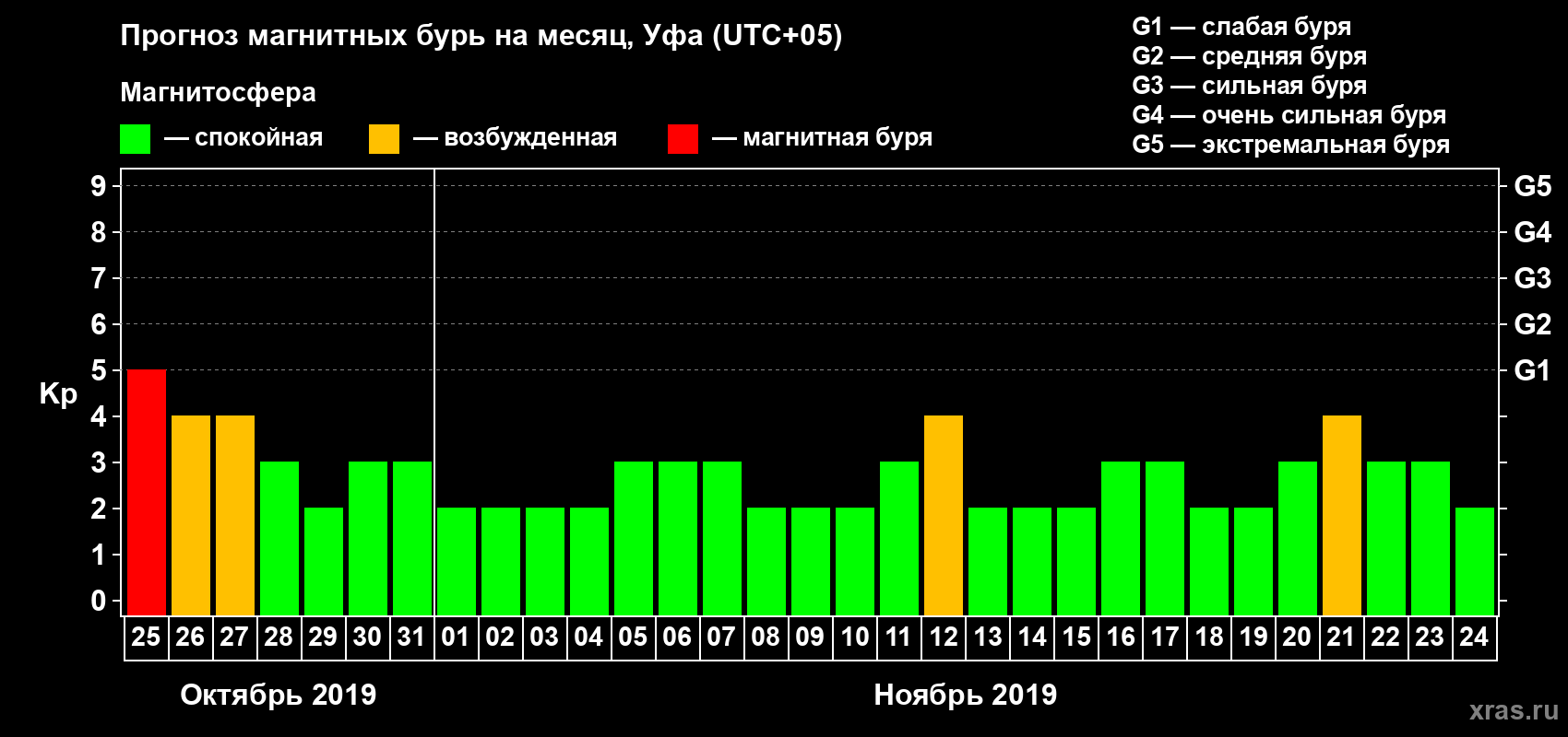 Прогноз магнитных бурь в Уфе — 25 октября 2019 года