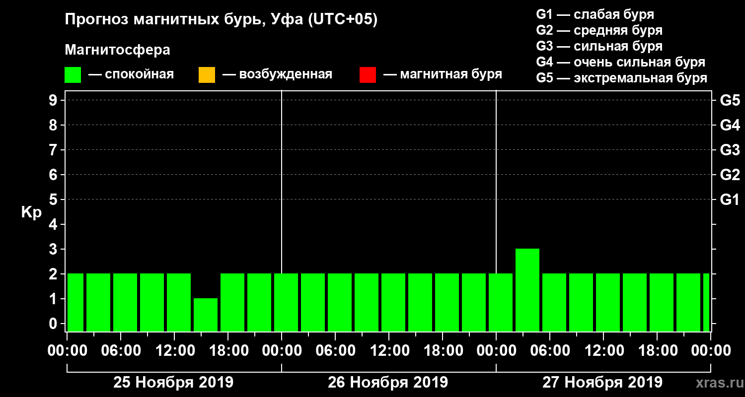 Прогноз магнитных бурь в Уфе — 25 ноября 2019 года