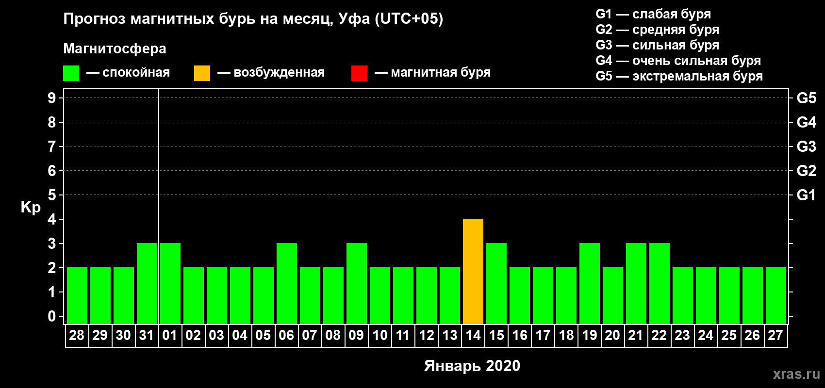 Прогноз магнитных бурь в Уфе — 28 декабря 2019 года