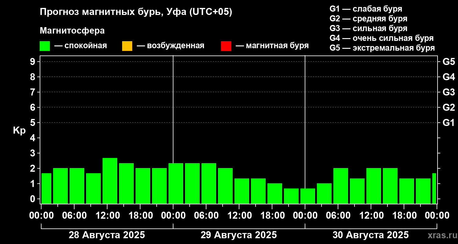 Прогноз магнитных бурь в Уфе — 28 августа 2025 года