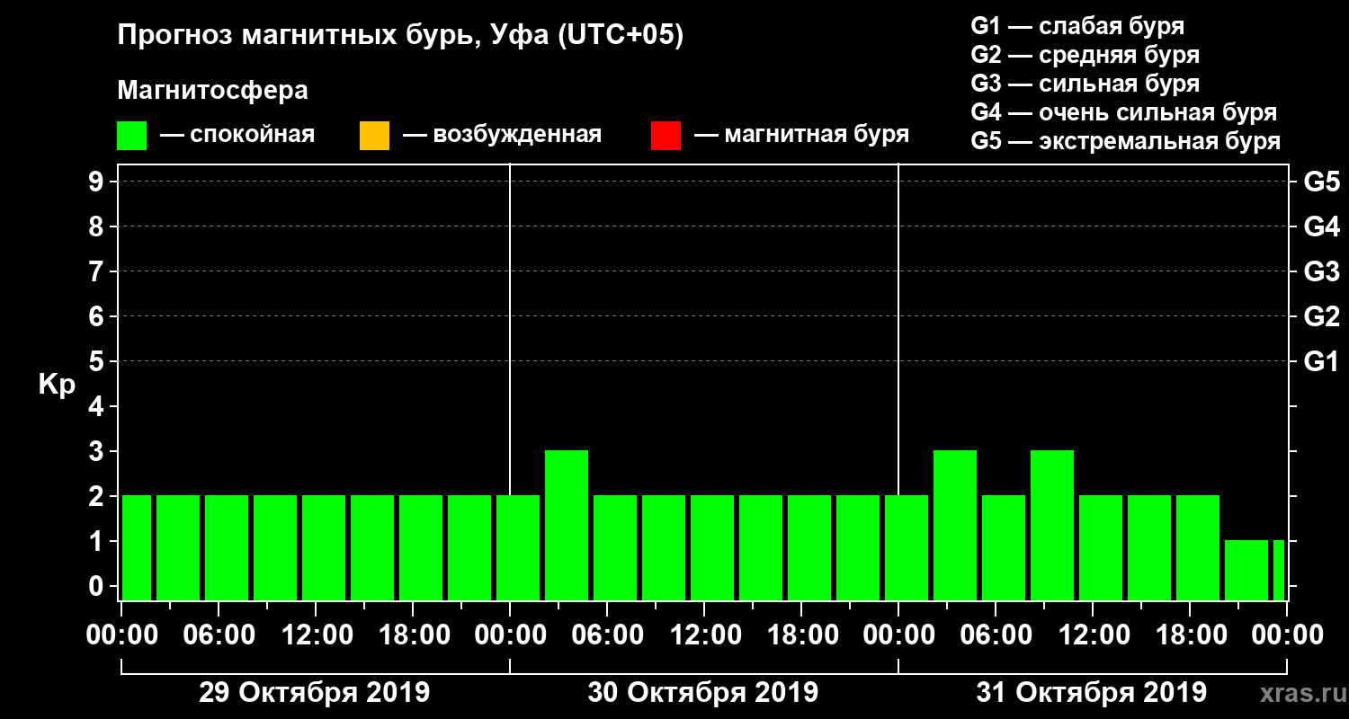 Прогноз магнитных бурь в Уфе — 29 октября 2019 года