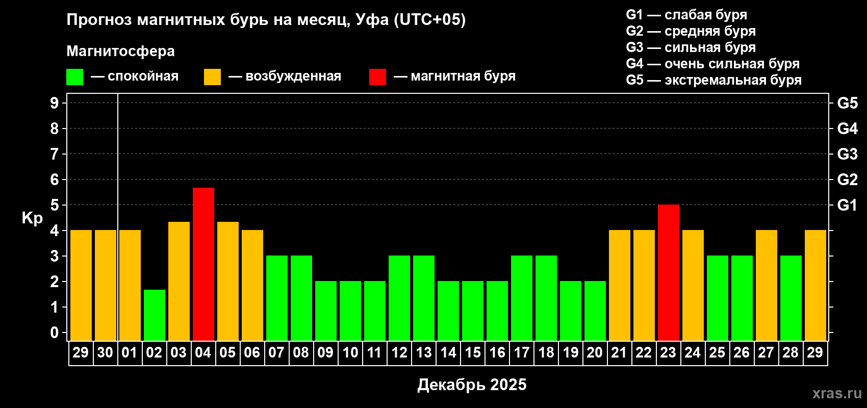Прогноз магнитных бурь в Уфе — 29 ноября 2025 года