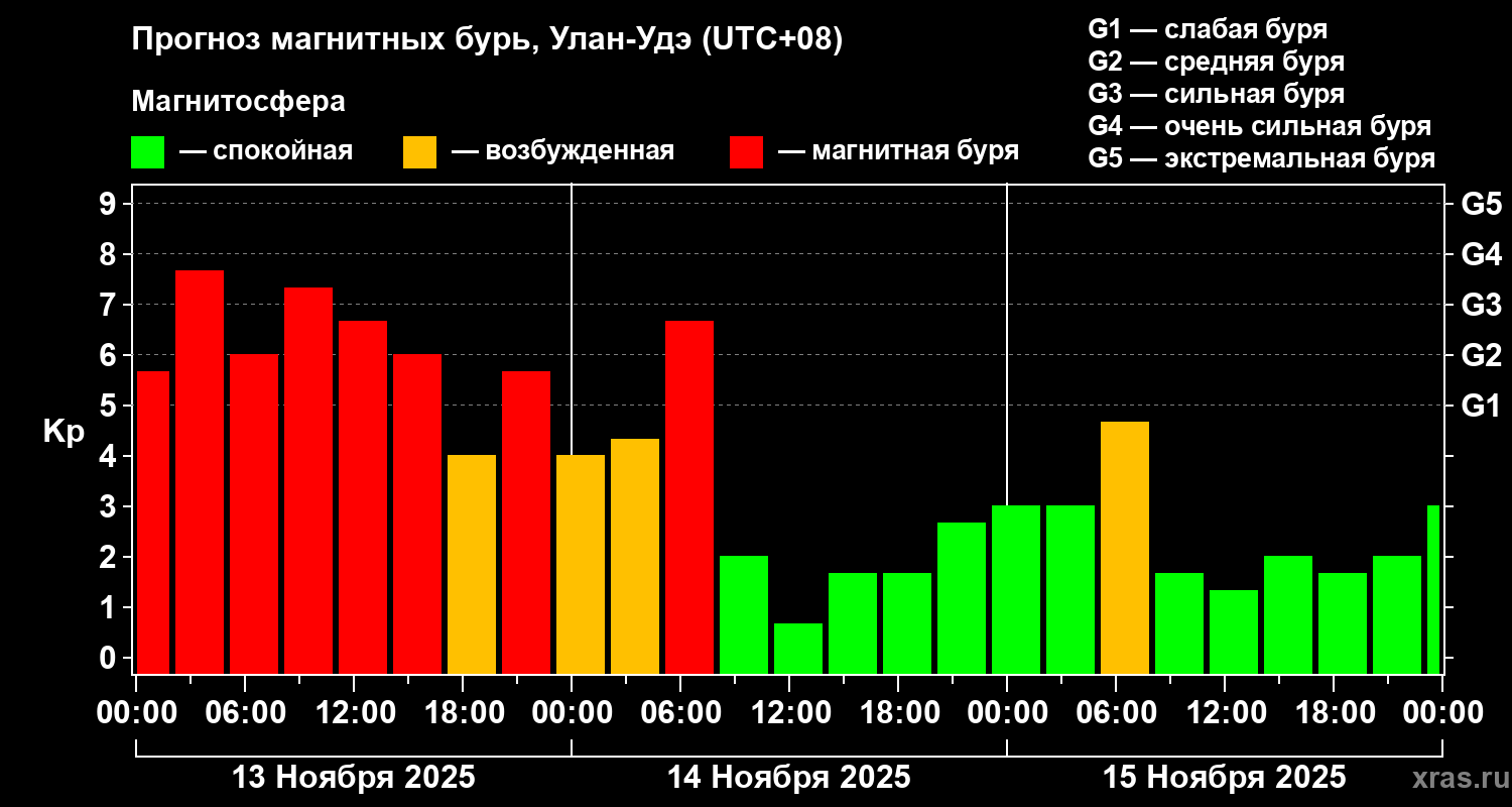 Прогноз магнитных бурь Улан-Удэ на 13 ноября 2025 года