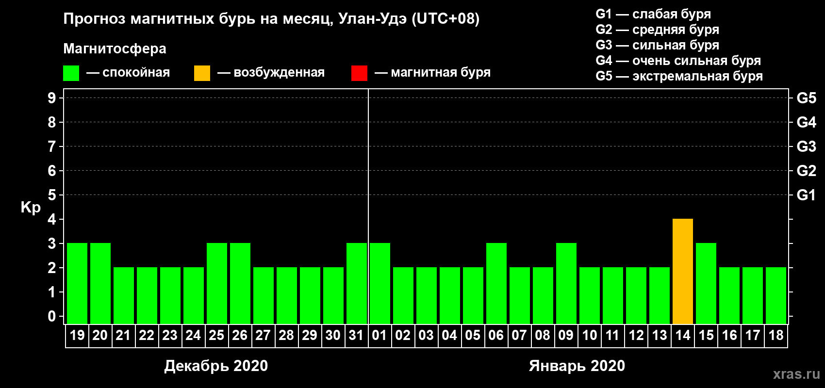 Прогноз магнитных бурь Улан-Удэ — 19 декабря 2019 года