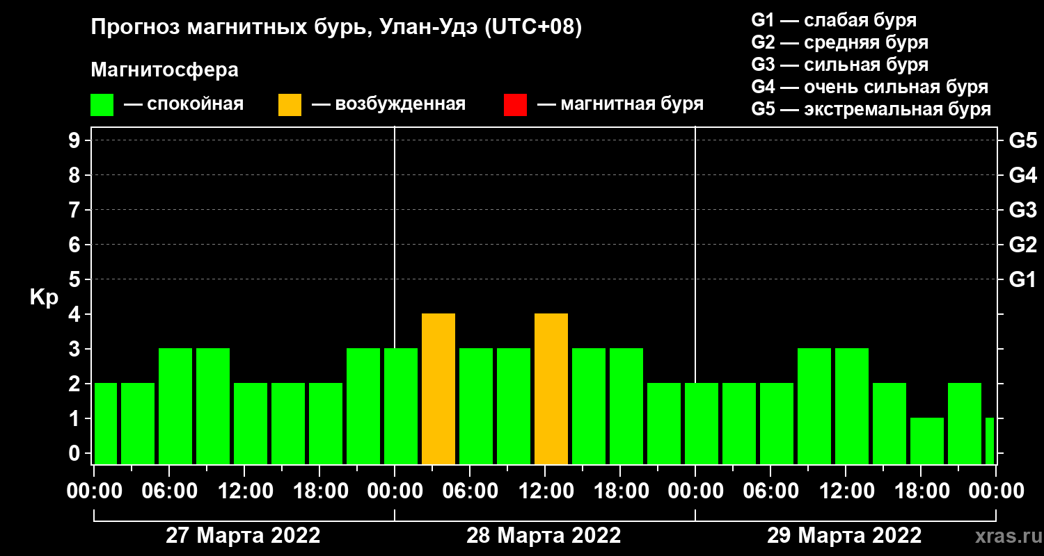 Прогноз магнитных бурь Улан-Удэ — 27 марта 2022 года