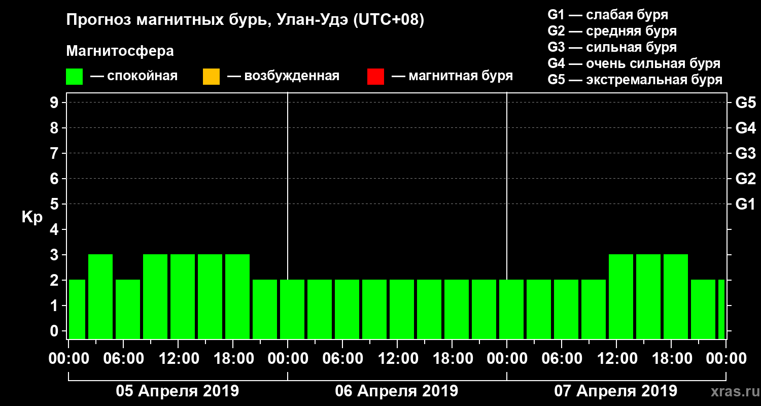 Прогноз магнитных бурь Улан-Удэ — 5 апреля 2019 года