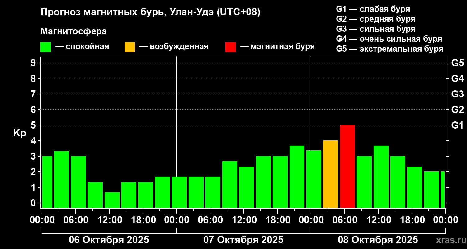 Прогноз магнитных бурь Улан-Удэ — 6 октября 2025 года