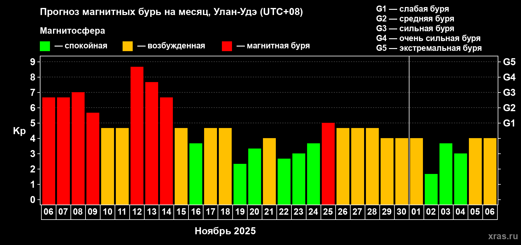 Прогноз магнитных бурь Улан-Удэ на 6 ноября 2025 года