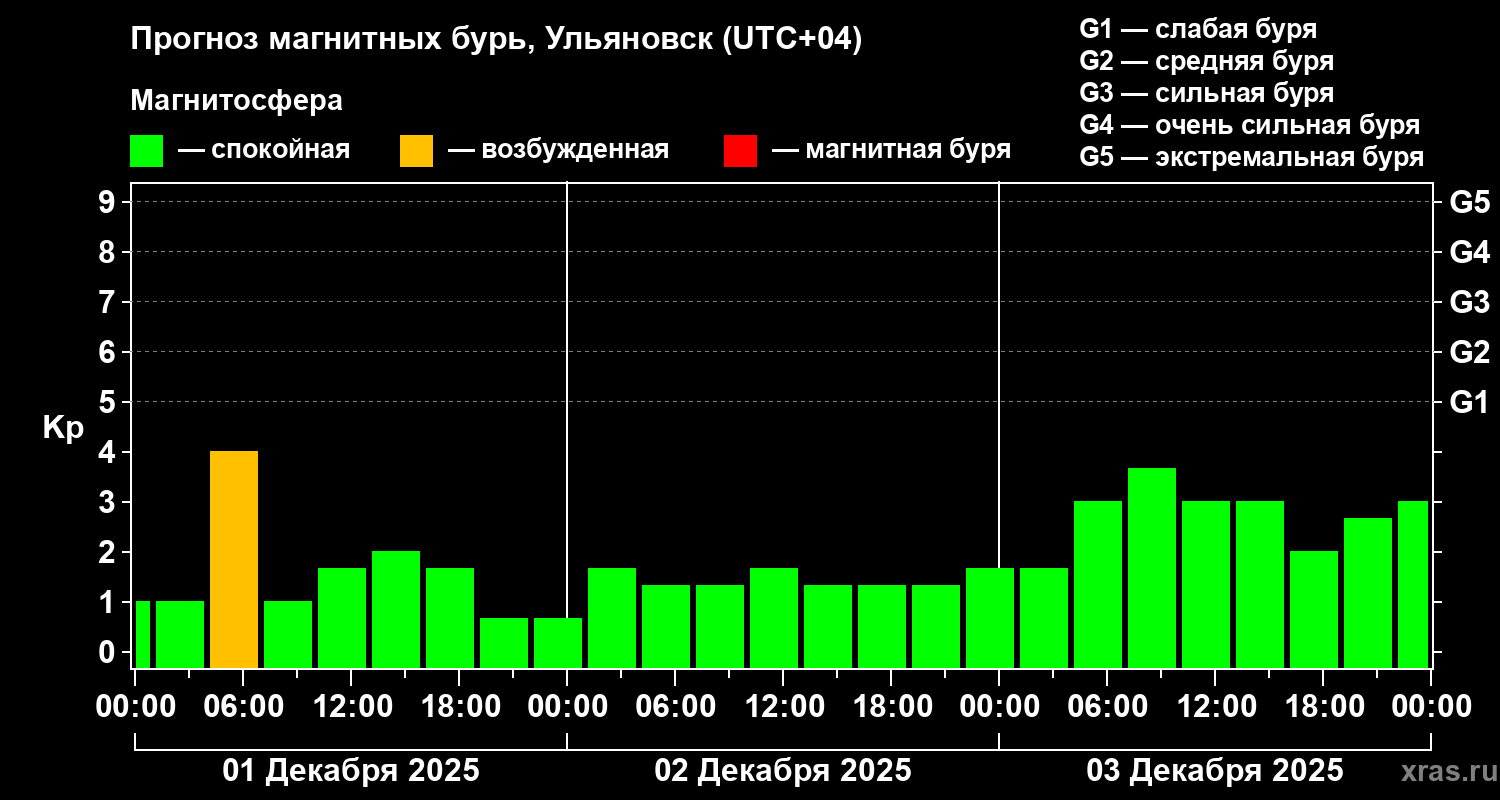 Прогноз магнитных бурь в Ульяновске — 1 декабря 2025 года