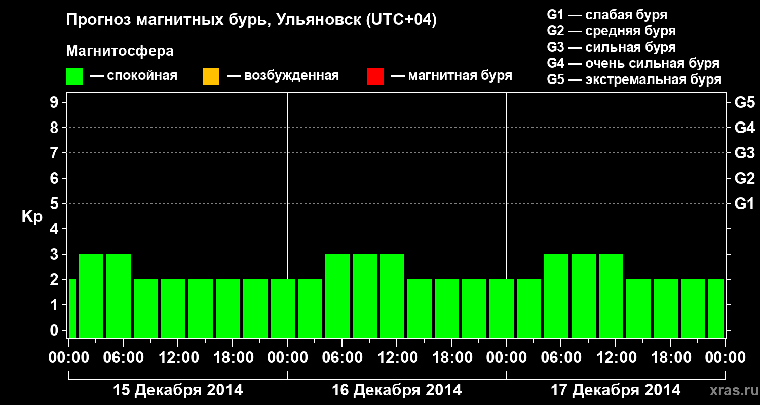 Прогноз магнитных бурь в Ульяновске — 15 декабря 2014 года