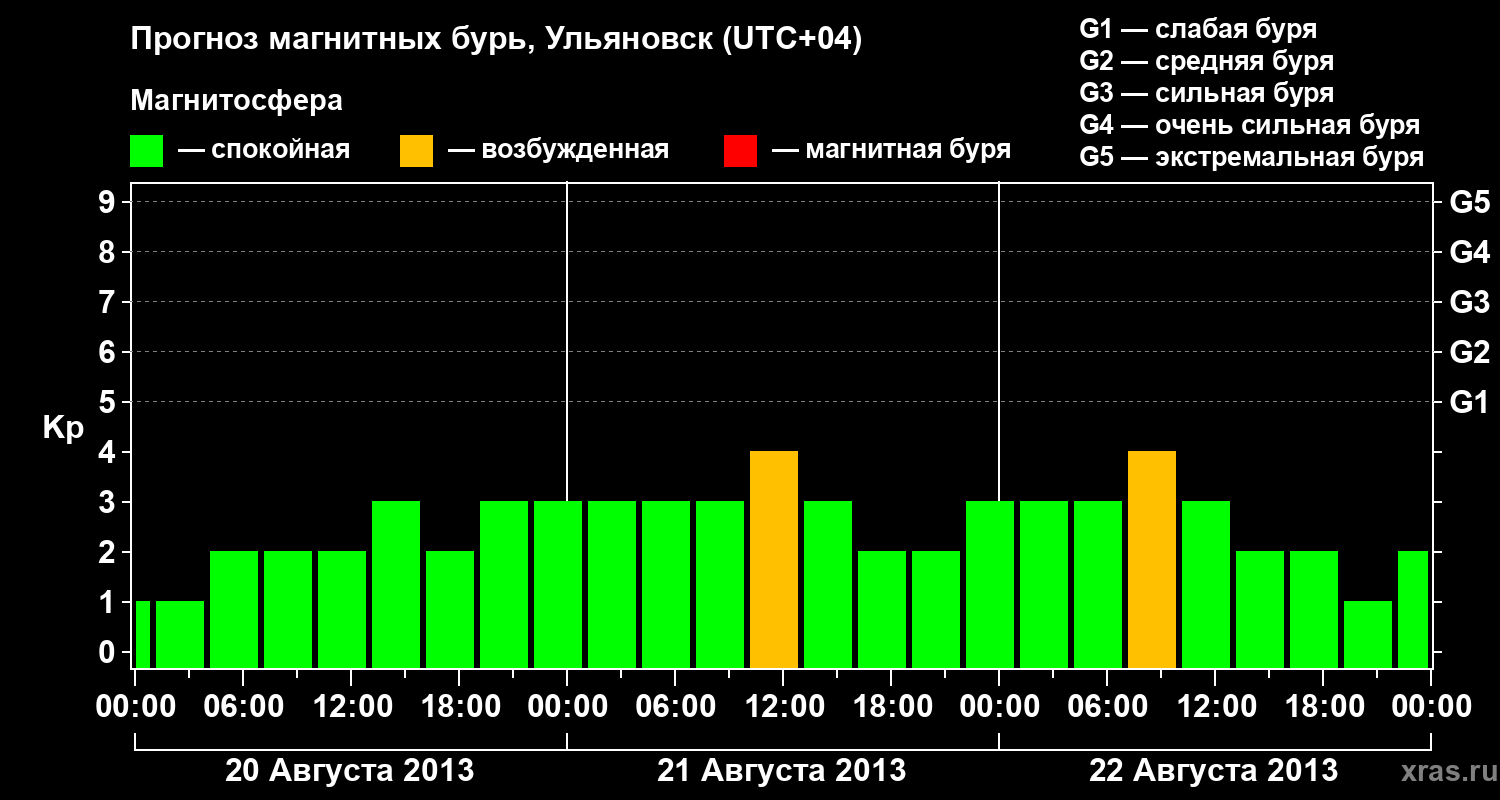 Прогноз магнитных бурь в Ульяновске на 20 августа 2013 года