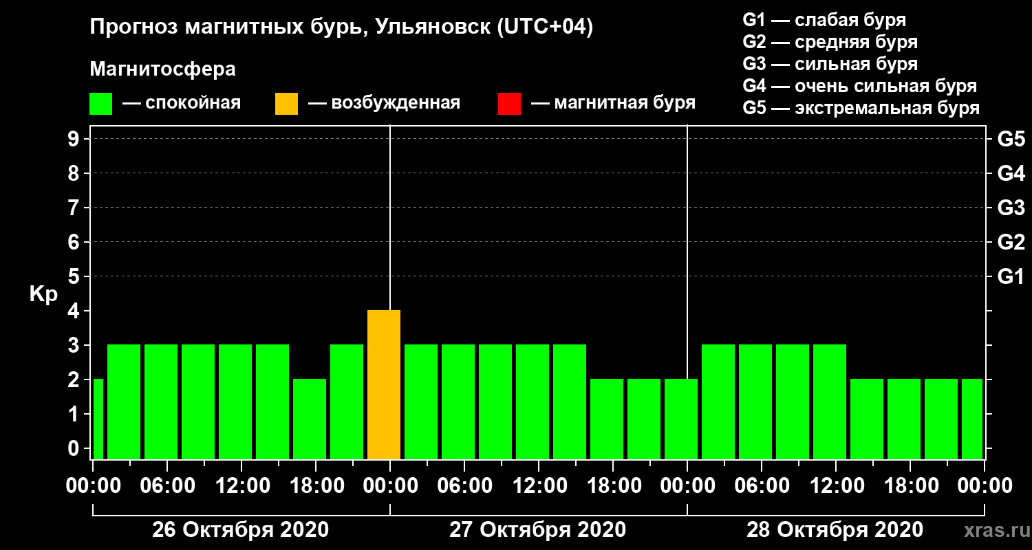 Прогноз магнитных бурь в Ульяновске — 26 октября 2020 года