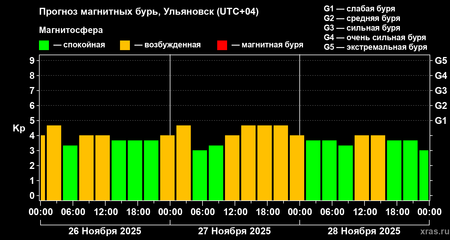 Прогноз магнитных бурь в Ульяновске на 26 ноября 2025 года