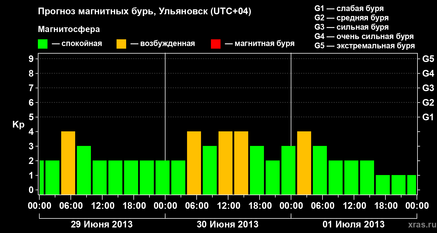 Прогноз магнитных бурь в Ульяновске — 29 июня 2013 года
