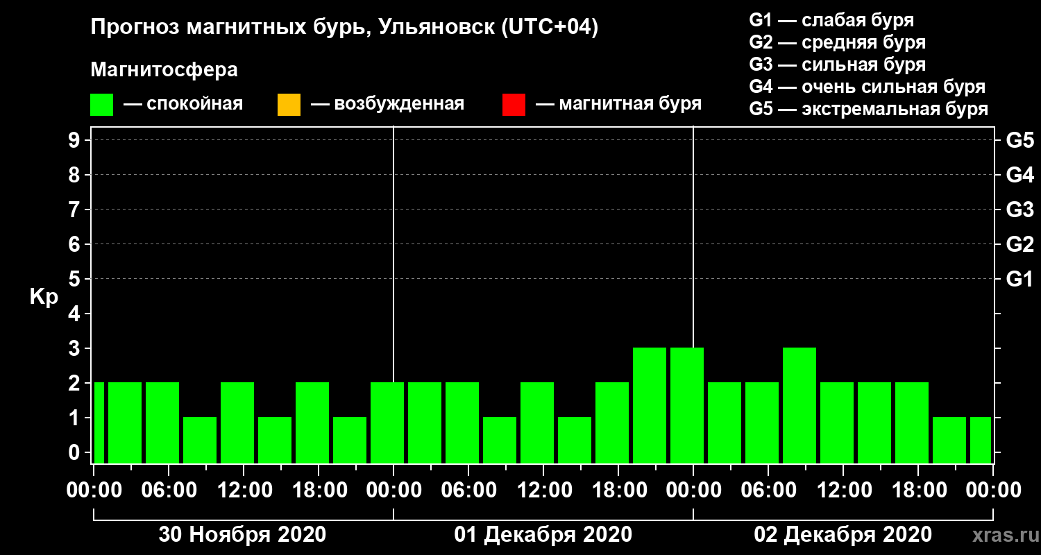 Прогноз магнитных бурь в Ульяновске на 30 ноября 2020 года