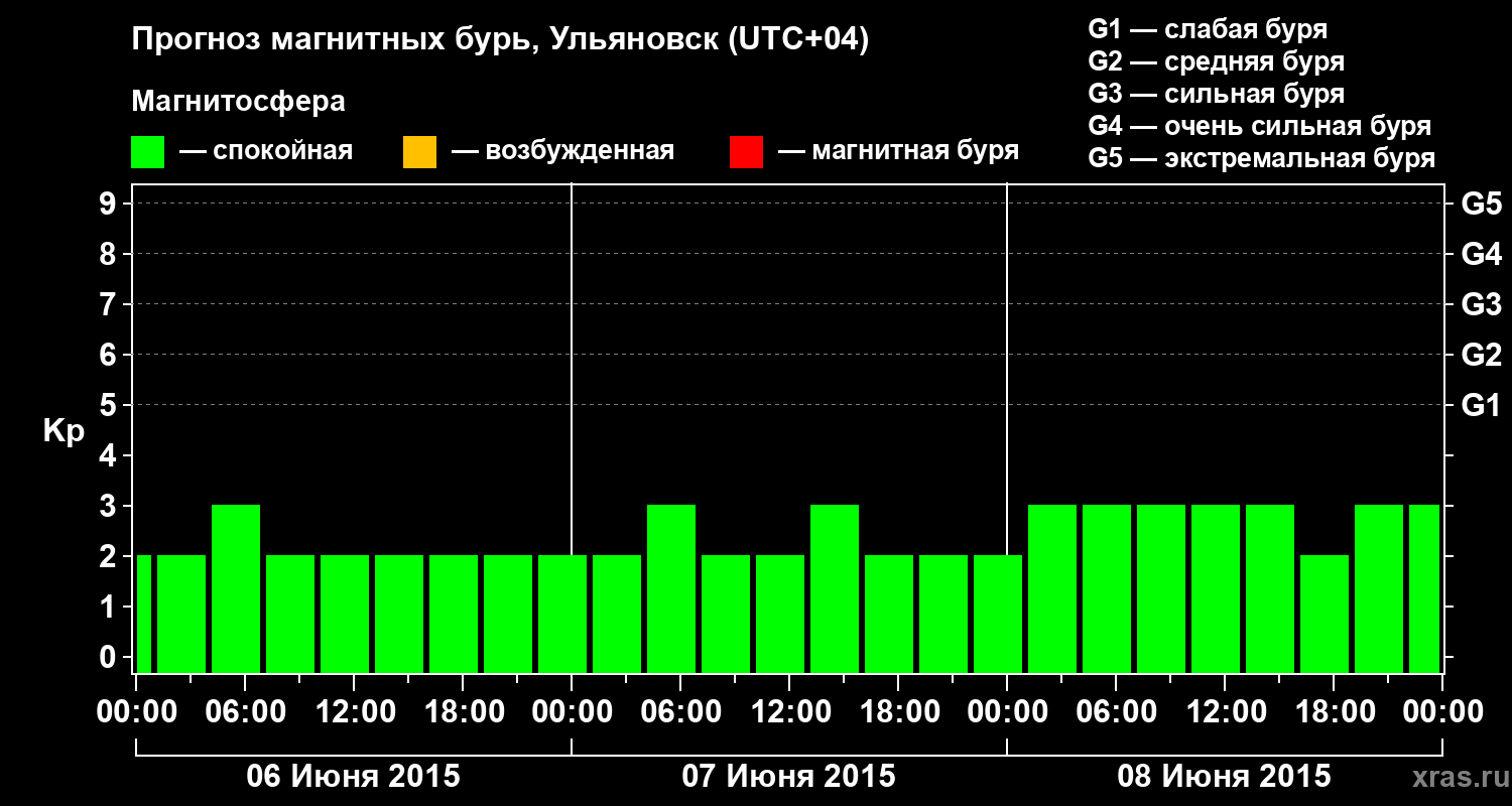 Прогноз магнитных бурь в Ульяновске на 6 июня 2015 года