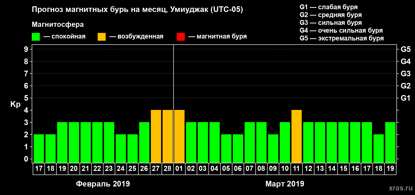 Прогноз магнитных бурь в Умиуджаке — 17 февраля 2019 года