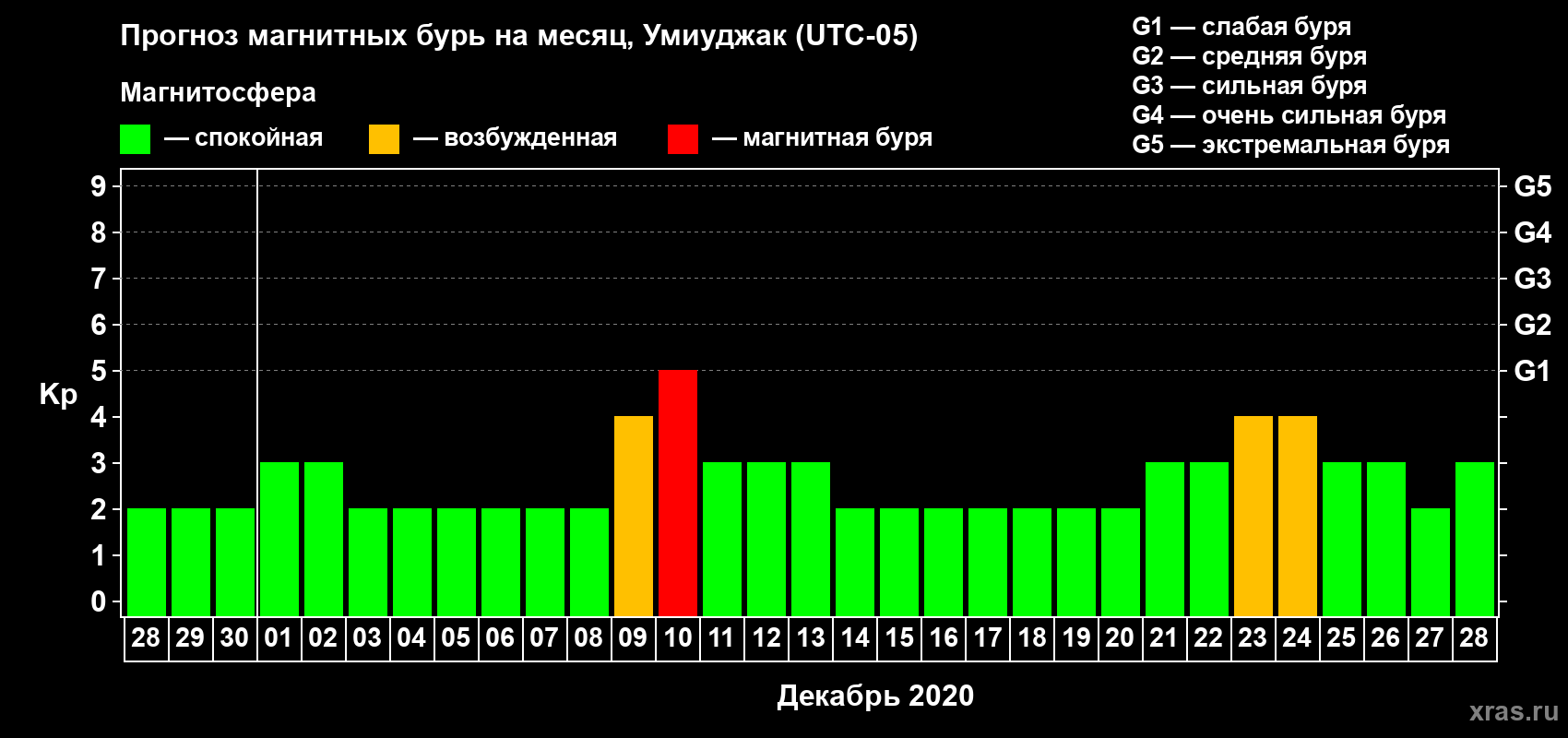 Прогноз магнитных бурь в Умиуджаке — 28 ноября 2020 года