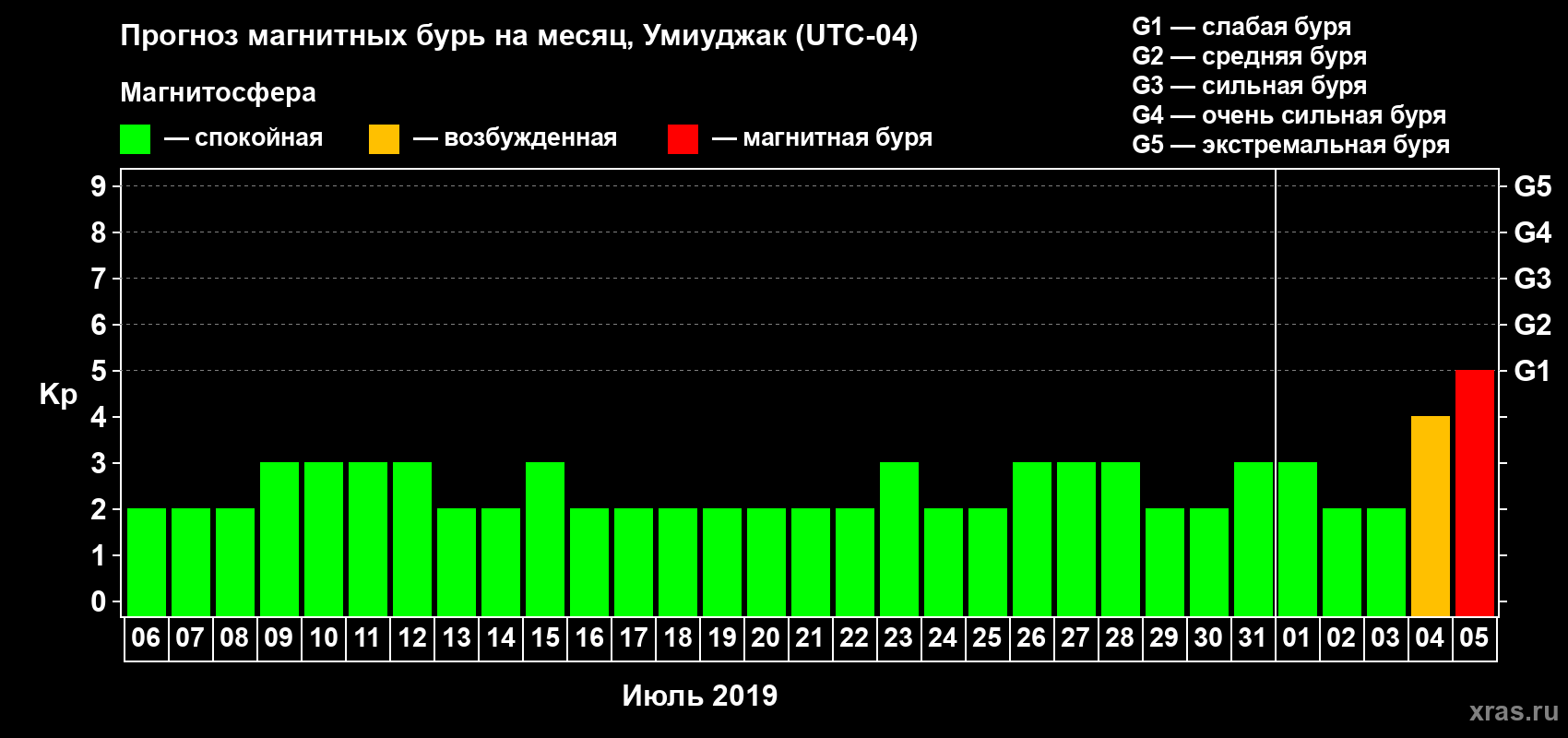Прогноз магнитных бурь в Умиуджаке — 6 июля 2019 года