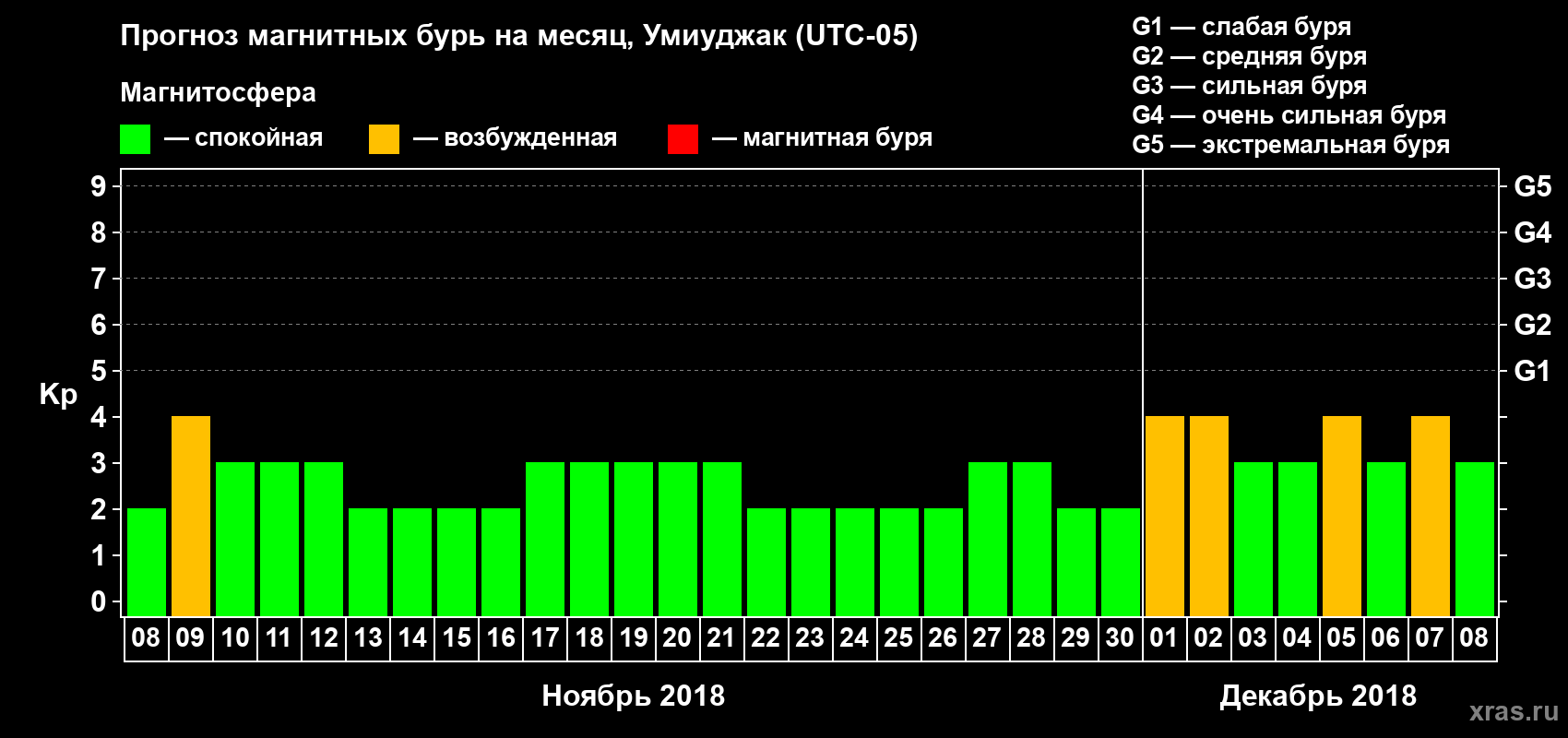 Прогноз магнитных бурь в Умиуджаке — 8 ноября 2018 года