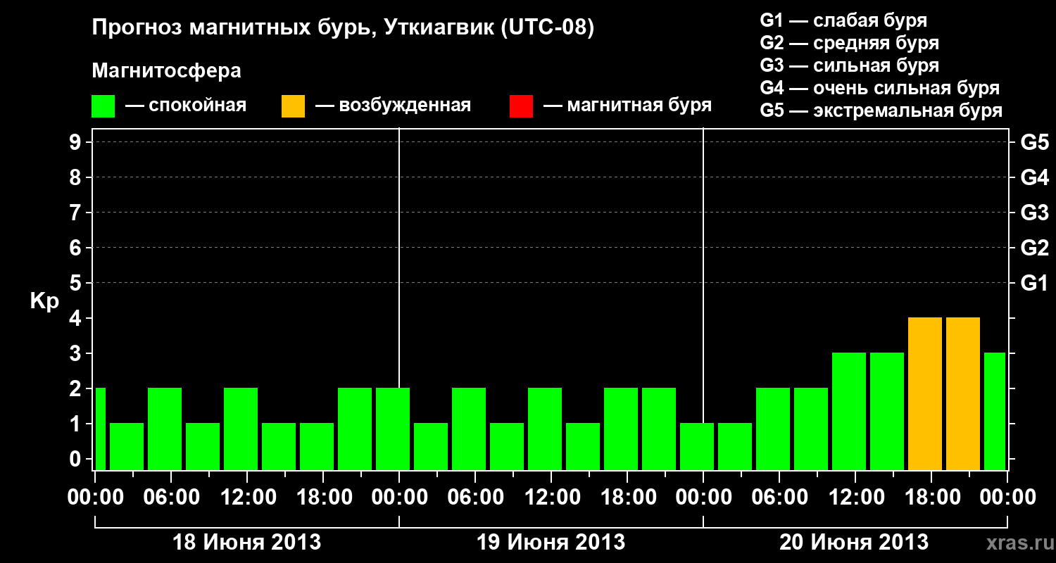 Прогноз магнитных бурь в Уткиагвике — 18 июня 2013 года