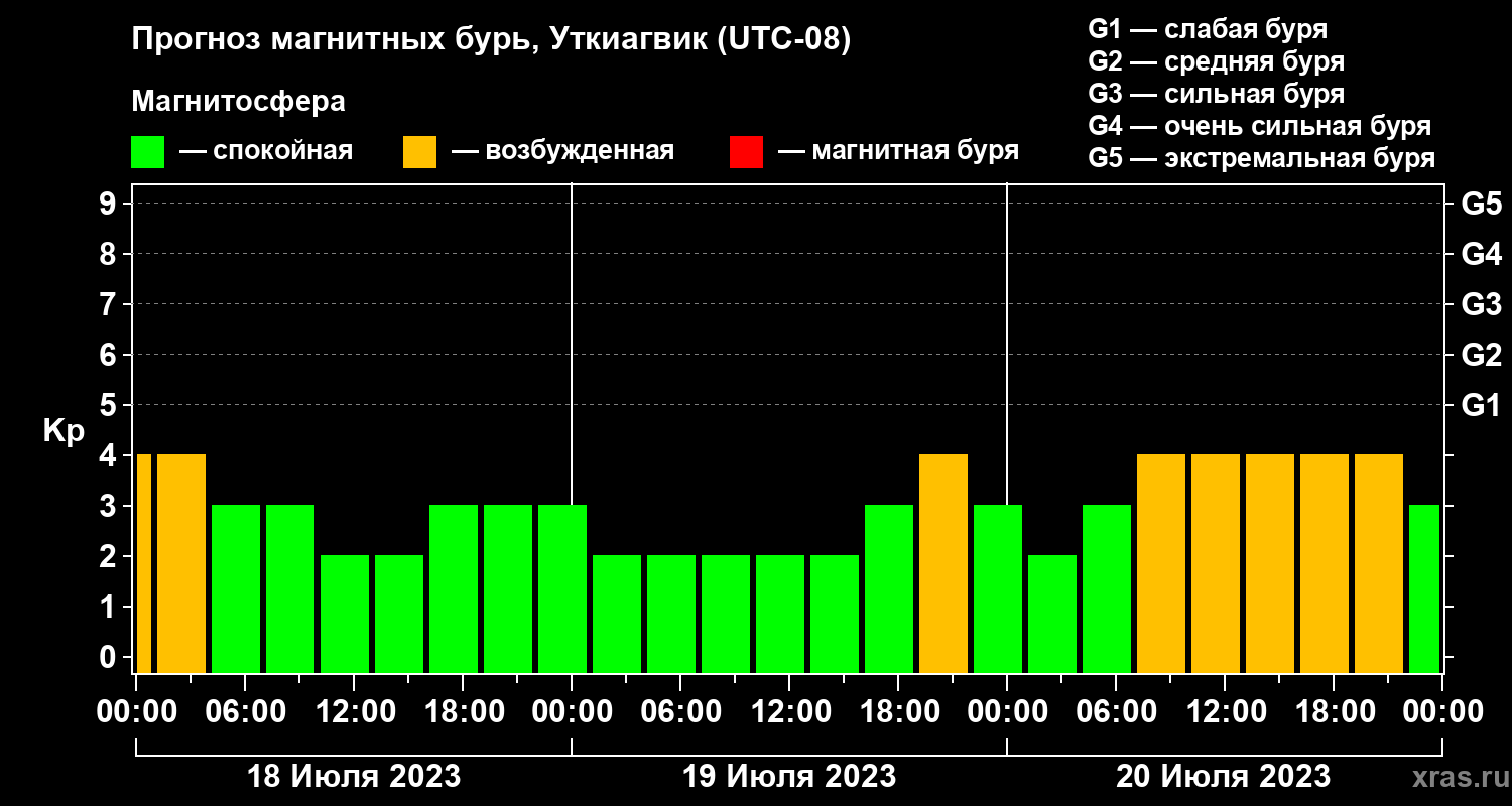 Прогноз магнитных бурь в Уткиагвике — 18 июля 2023 года