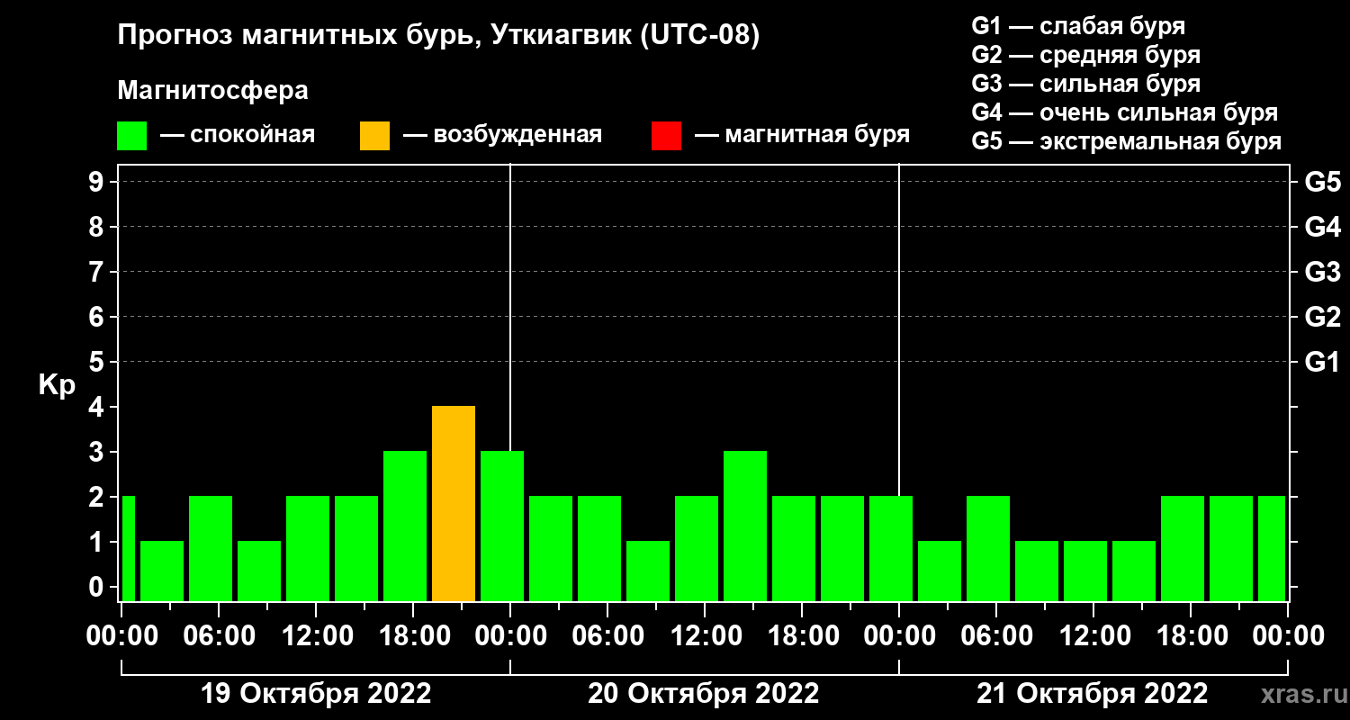 Прогноз магнитных бурь в Уткиагвике — 19 октября 2022 года