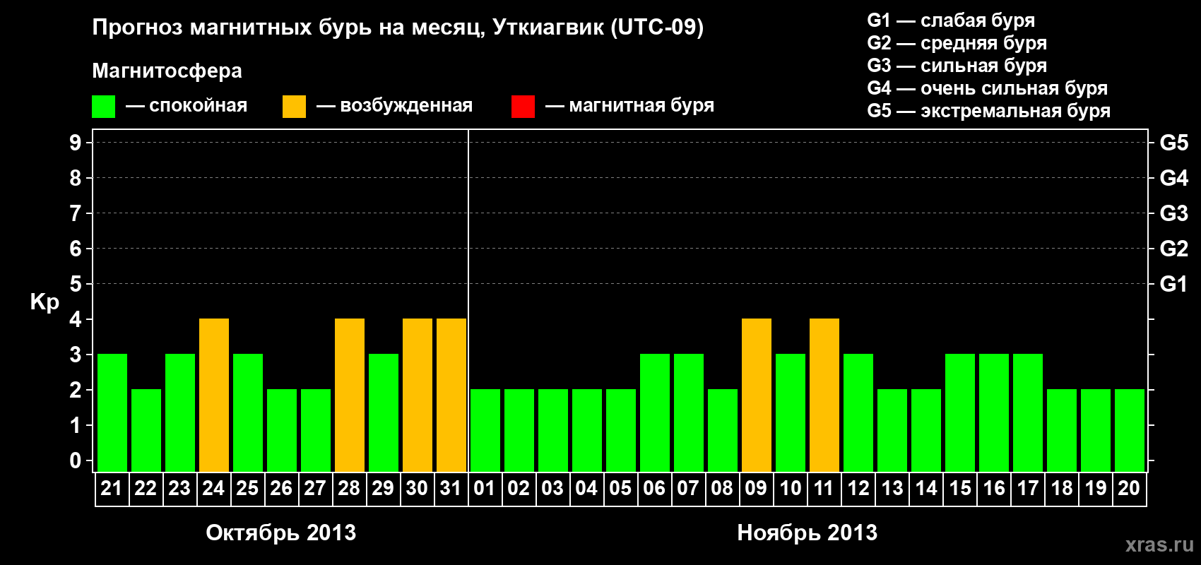 Прогноз магнитных бурь в Уткиагвике — 21 октября 2013 года