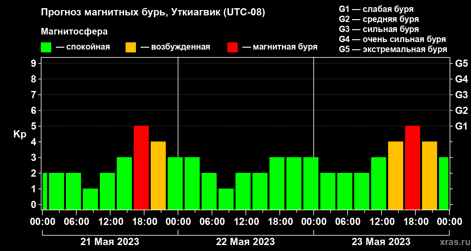 Прогноз магнитных бурь в Уткиагвике — 21 мая 2023 года