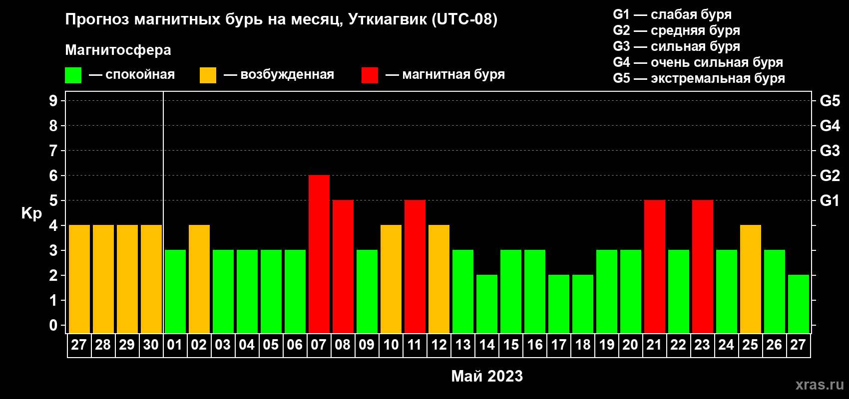Прогноз магнитных бурь в Уткиагвике — 27 апреля 2023 года