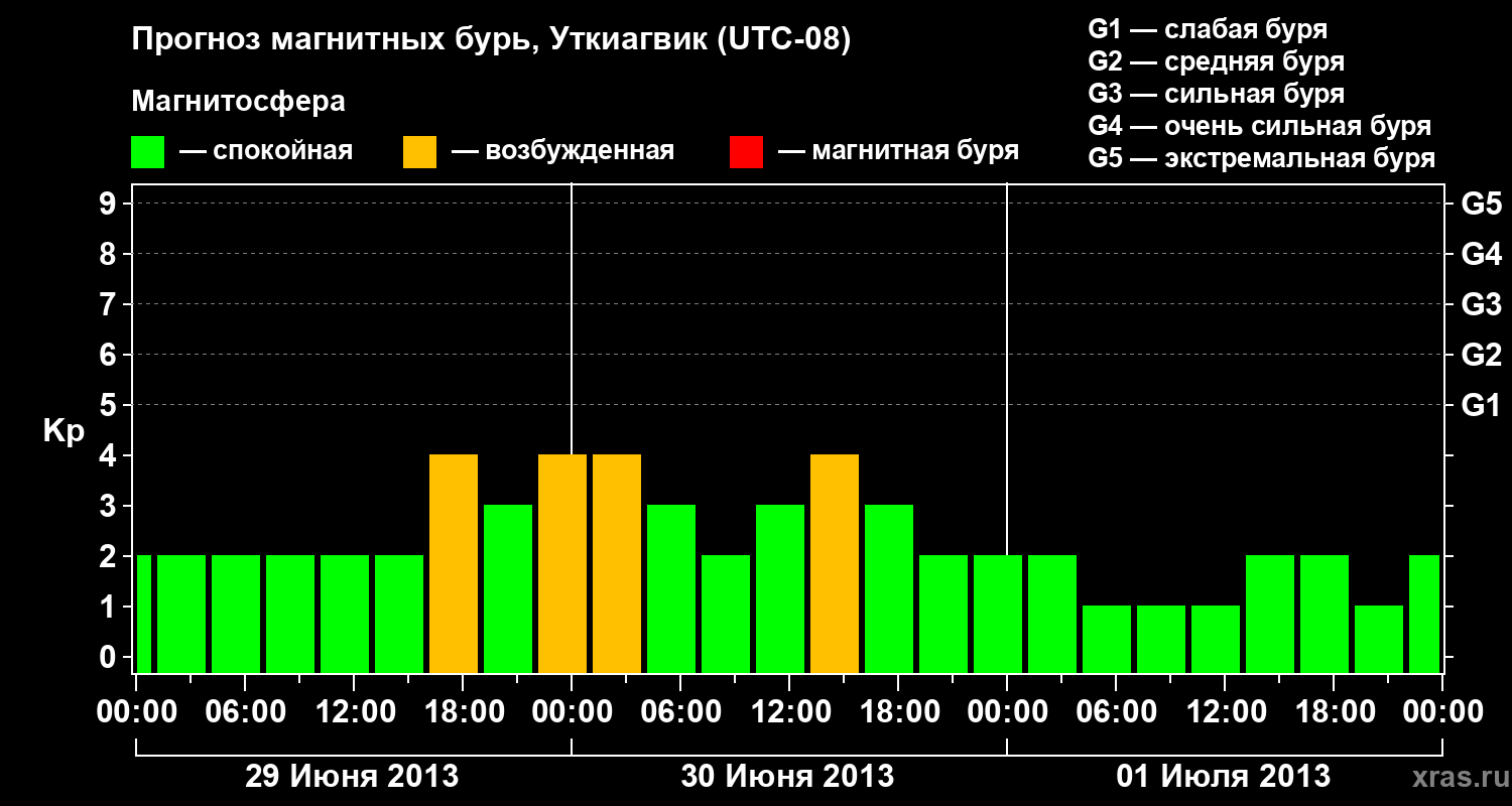 Прогноз магнитных бурь в Уткиагвике — 29 июня 2013 года