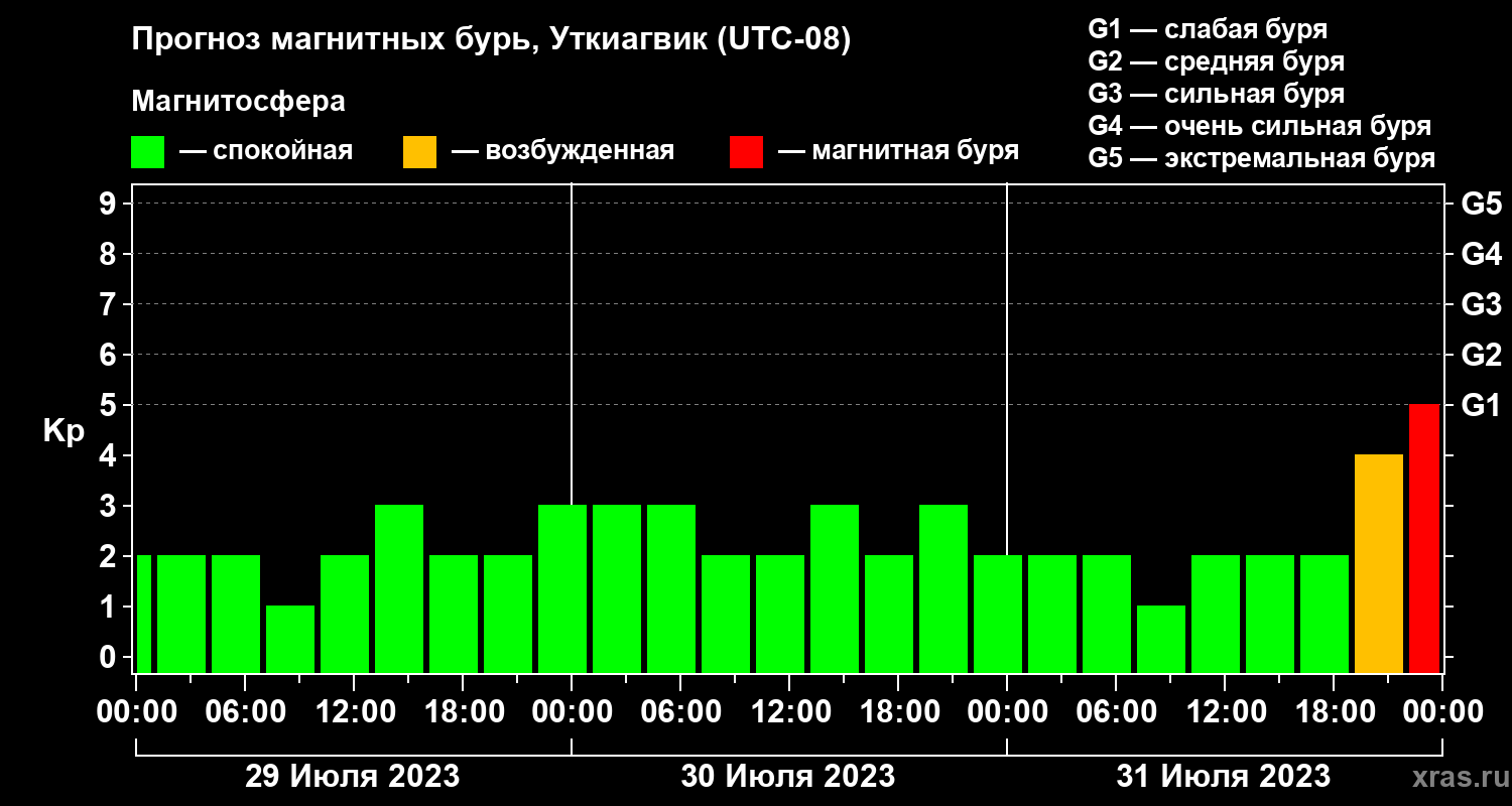 Прогноз магнитных бурь в Уткиагвике — 29 июля 2023 года