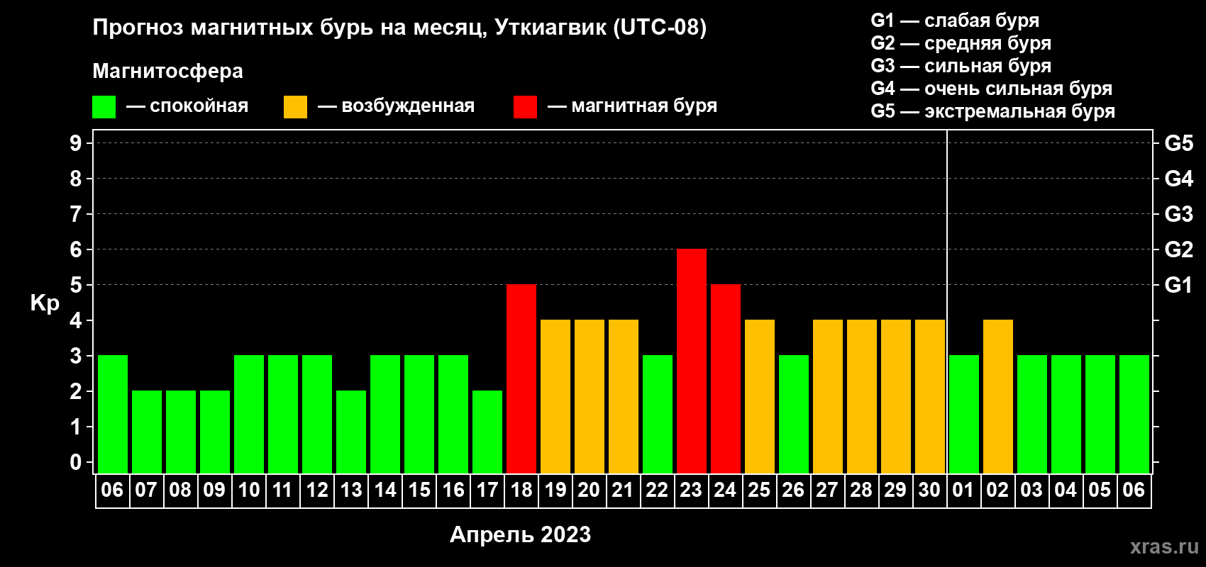 Прогноз магнитных бурь в Уткиагвике — 6 апреля 2023 года